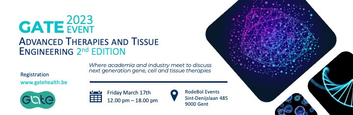 Following the success of its kick-off event in October 2021, GATE is pleased to announce its 2 nd Academic - Industrial partnering event Cell & Gene Therapies and Tissue engineering, on 17 March 2023, in Ghent.