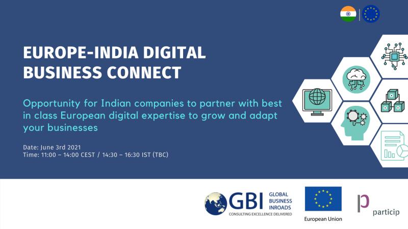 The Delegation of the European Union to India in collaboration with Global Business Inroads, Enterprise Europe Network, and Particip is launching EU-India Digital Business Connect to bring together European digital tech companies with Indian companies that are seeking these innovative solutions for the digital transformation of their businesses. To harness the opportunities coming out of “Digital Europe” and “Digital India” and addressing the needs arising as a result of the global Covid pandemic, this is a timely opportunity for Indian companies to find, select and partner with best of class European digital expertise to grow and adapt your businesses.