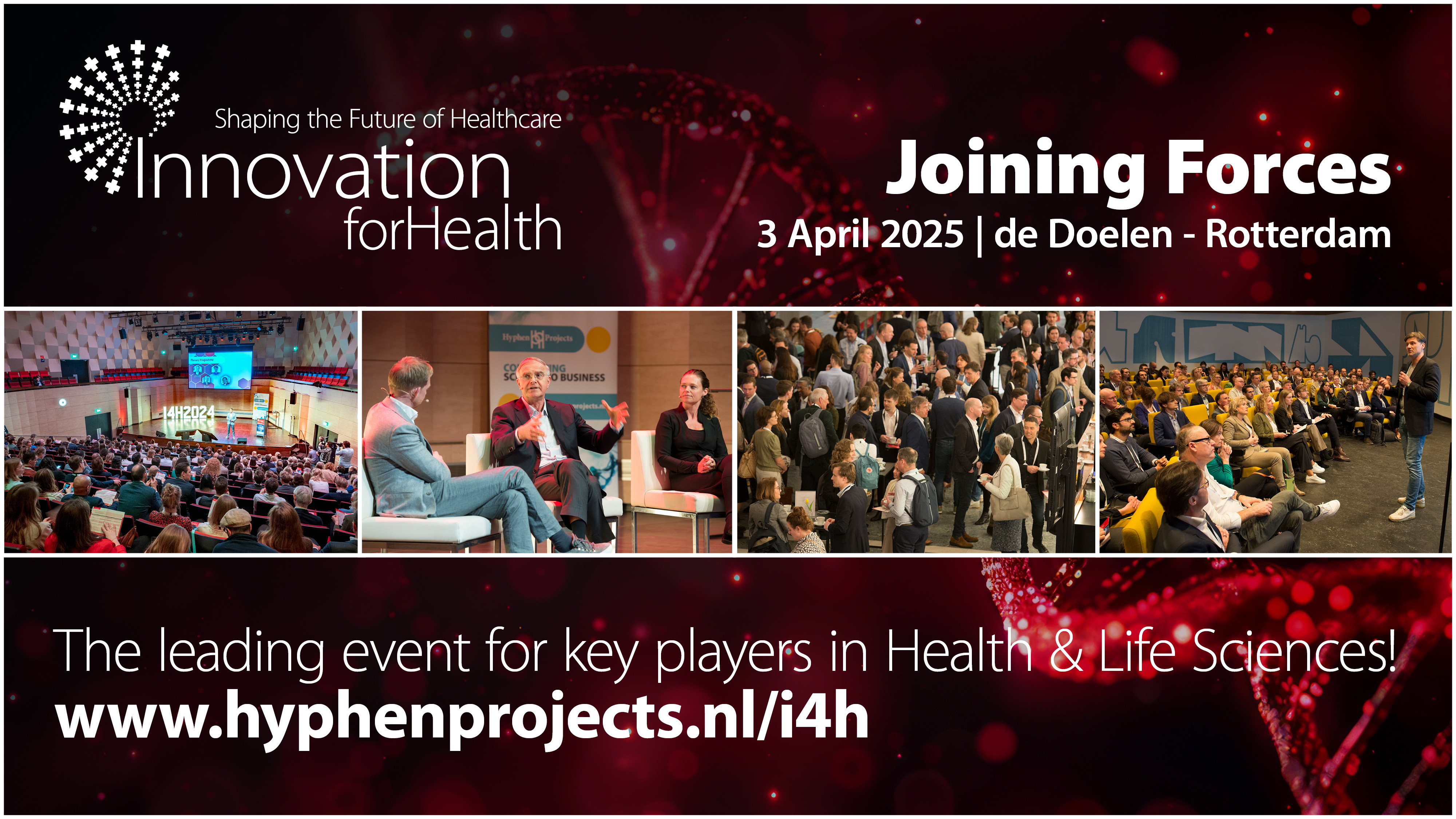 Join us on April 3, 2025, in Rotterdam for the 12th edition of Innovation for Health, the leading event in Health & Life Sciences. This year’s theme, Joining Forces, will bring together 800+ innovators, entrepreneurs, scientists, investors, and policymakers to accelerate the development of healthcare solutions that will shape the future.