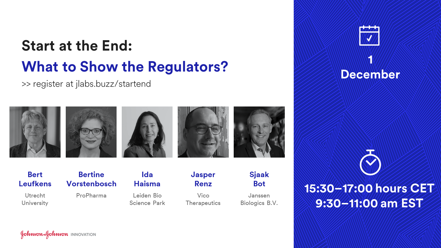 Join “Start at the end” in which Johnson & Johnson Innovation – JLABS and unlock_ brings you a program with learnings that may help you smooth your regulatory approach.