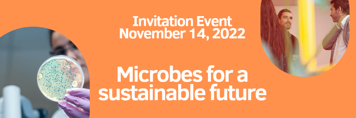 Microbes for a sustainable future - A meet-up for industry, innovative start-ups and scale-ups, as well as academics on November 14, 2022.