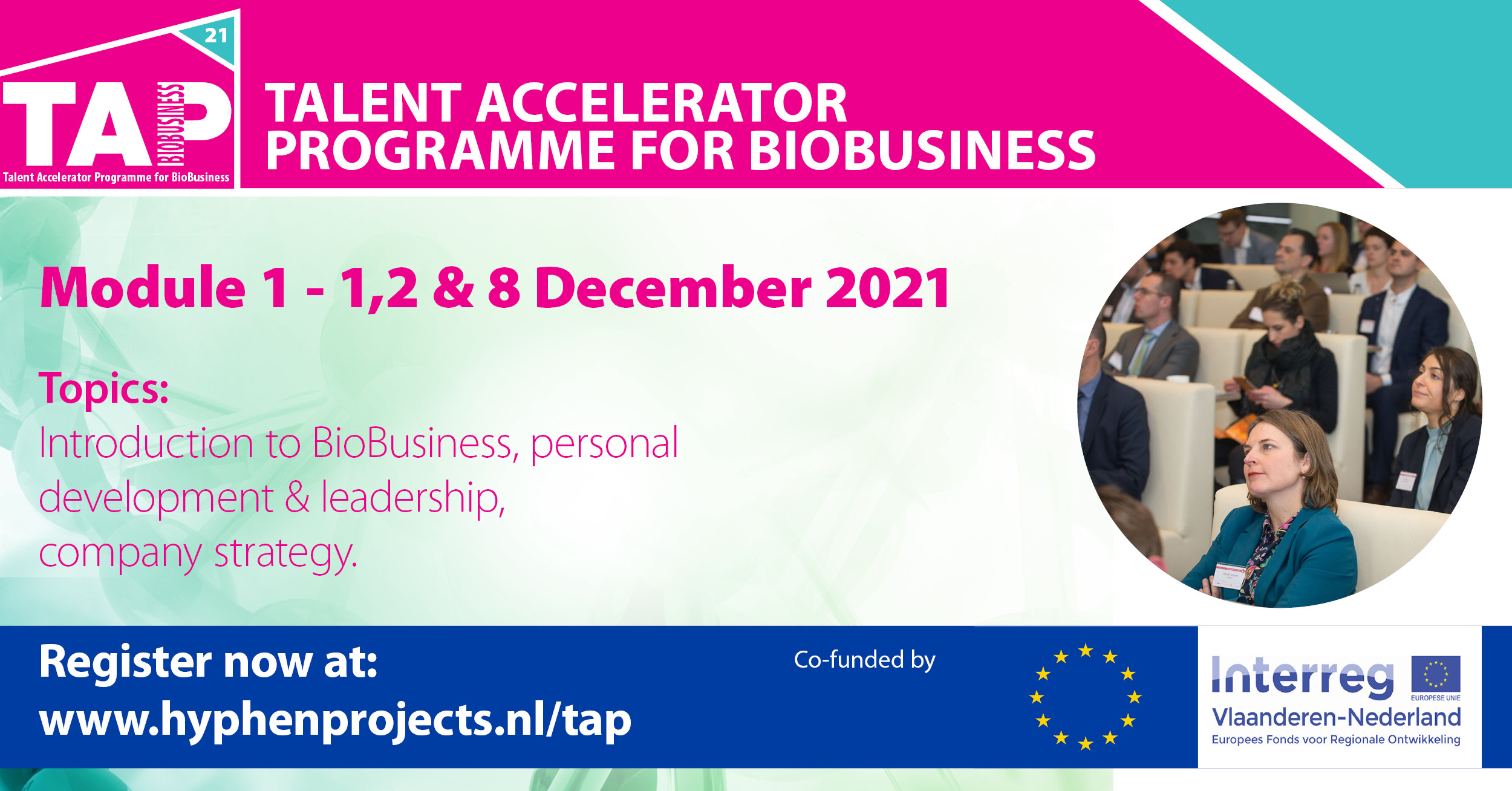 Talent Accelerator Programme for BioBusiness (TAP BioBusiness) is a training & mentoring programme for the next generation BioBusiness leaders for the Dutch and Belgium Life Sciences & Health sector!