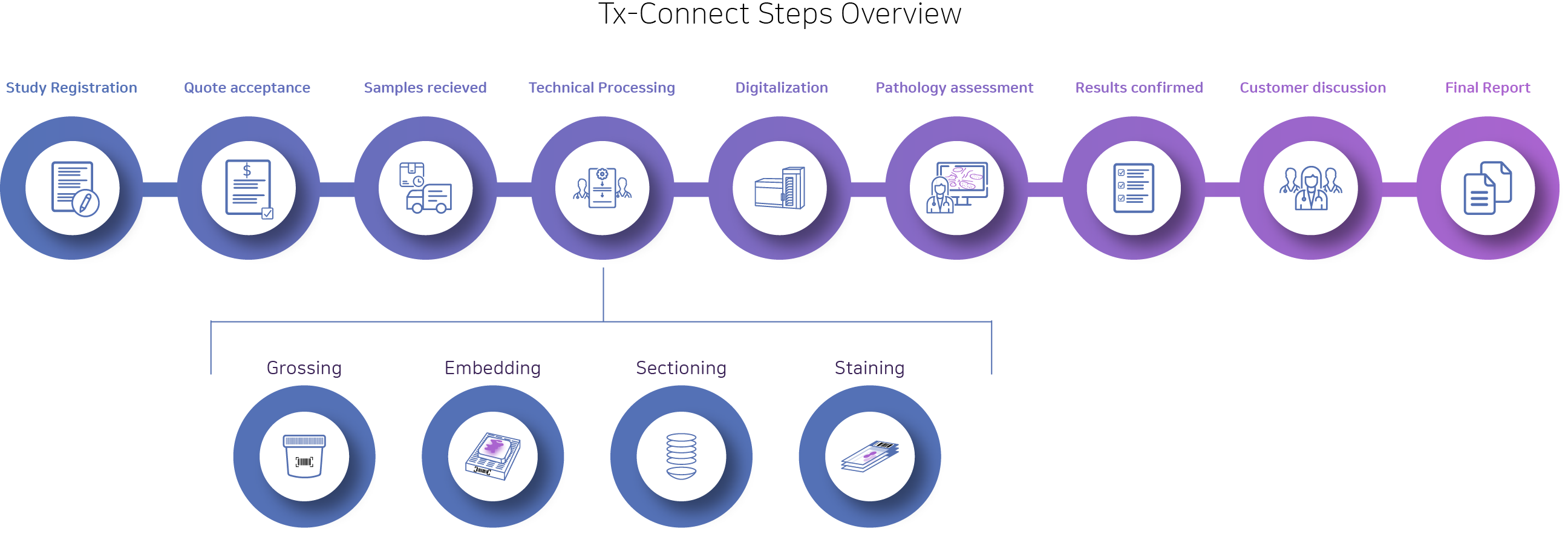 Tx-Connect is a fully web-based laboratory information system (LIS) that streamlines outsourced histopathology requests for biotech companies and contract research organizations. The portal provides access to a centralized system that facilitates seamless integration between “click–and–select“ histopathology services and a comprehensive digital pathology workflow. Tx-Connect offers a new way for researchers to unlock the accuracy and speed of digital pathology methods minus the need to purchase or integrate new software or equipment.